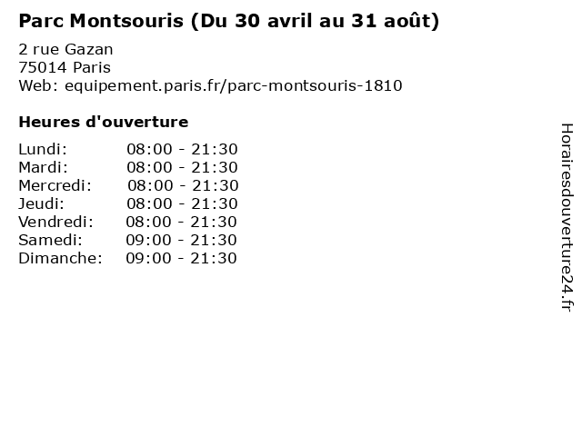 1 Parc Montsouris (Du 29 octobre au 28 février) (Distance: 0,00 km) 2 rue Gazan, 75014 Paris 28, 29, au, du, février, jardin, montsouris, octobre, parc, square 2 Parc Montsouris (Du 01 au 24 mars) (Distance: 0,00 km) 2 rue Gazan, 75014 Paris 01, 24, au, du, jardin, mars, montsouris, parc, square 3 Parc Montsouris (Du 25 mars au 29 avril et septembre) (Distance: 0,00 km) 2 rue Gazan, 75014 Paris 25, 29, au, avril, du, et, jardin, mars, montsouris, parc, septembre, square 4 Gym Suedoise - Paris 14 Montsouris - François-Xavier W (Distance: 0,07 km) 23 Avenue Reille, 75014 Paris 14, centre, club, cours, françois, gym, l'exercice, la santé, le sport, les muscles, levallois, montsouris, paris, seniors, sporting, stretch, suedoise, xavier, yoga&gym 5 Gym Suedoise - Paris 14 Montsouris - Caroline R (Distance: 0,07 km) 23 Avenue Reille, 75014 Paris 14, caroline, centre, club, cours, gym, l'exercice, la santé, le sport, les muscles, levallois, montsouris, paris, seniors, sporting, stretch, suedoise, yoga&gym 6 Gym Suedoise - Paris 14 Montsouris - Camilia (Distance: 0,07 km) 23 Avenue Reille, 75014 Paris 14, camilia, centre, club, cours, gym, l'exercice, la santé, le sport, les muscles, levallois, montsouris, paris, seniors, sporting, stretch, suedoise, yoga&gym |