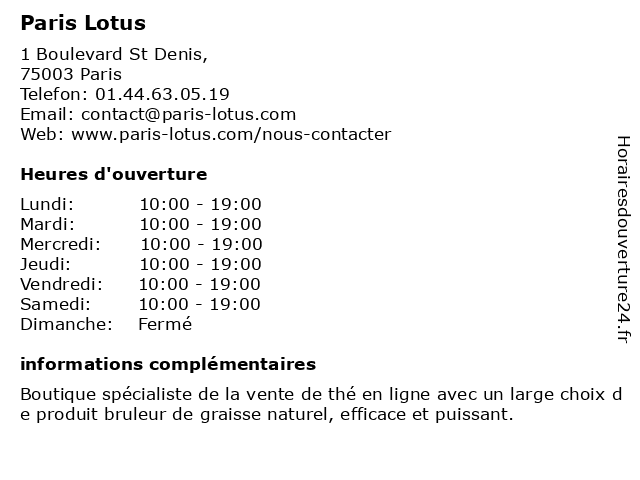 1 Paris Lotus (Distance: 2,04 km) 91 rue Saint Lazare, 75009 Paris articles, asiatiques, lotus, magasin, maison, paris, produits, roseau 2 Le Lotus de Jade (Distance: 0,43 km) 239 Rue Saint-Martin,, 75003 Paris de, jade, le, lotus, massage, spa 3 Le Lotus Bleu (Distance: 1,09 km) 17 Rue de La Pierre Levée, 75011 Paris asiatique, bleu, le, lotus, restaurant 4 Lotus de Siam (Distance: 3,49 km) 110 Rue La Boétie, 75008 Paris asian, business, de, foods, lotus, restaurants, siam 5 Lotus de Thaï (Distance: 4,73 km) 115 Avenue de Villiers, 75017 Paris asian, business, de, foods, lotus, restaurants, thaï 6 Lotus d'or (Distance: 5,21 km) 42 rue jean jaures, 92300 Levallois-Perret d'or, lotus, massage, relaxation, soins, spa  |