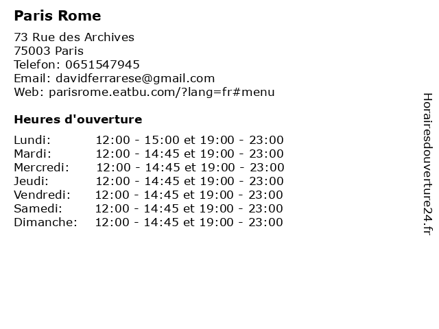 | Mardi | 12:00-14:45 et 19:00-23:00 |