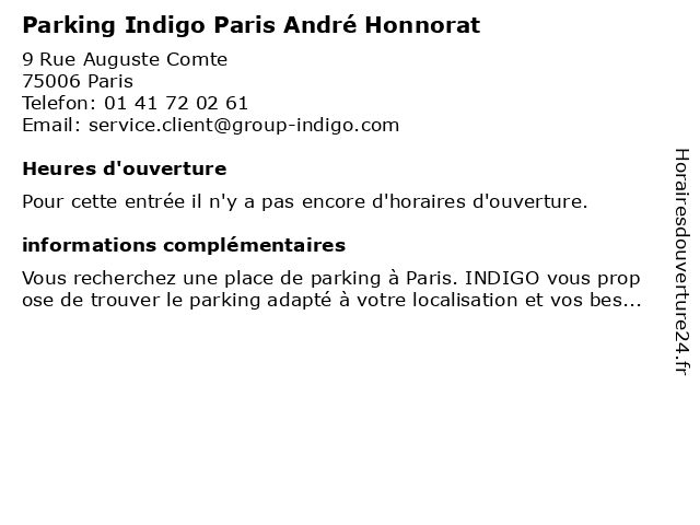| Appeler Parking Indigo Paris André Honnorat | |