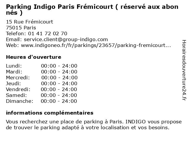 Termes de recherche pour Parking Indigo Paris Frémicourt ( réservé aux abonnés ):aux, paris, indigo, reserve, parking, frémicourt, abonnés, borne de recharge pour véhicules électriques |