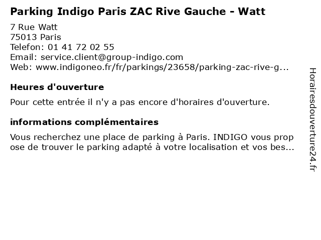 | Appeler Parking Indigo Paris ZAC Rive Gauche - Watt | |