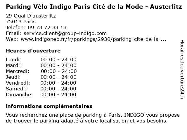1 Parking Indigo Paris Cité de la Mode - Austerlitz (Distance: 0,01 km) 29 Quai D'austerlitz, 75013 Paris austerlitz, borne de recharge pour véhicules électriques, cité, de, indigo, la, mode, paris, parking 2 12.5 - Parking Vélo et deux Roues (Distance: 0,05 km) 29 quai d'Austerlitz, 75013 Paris 12.5, deux, deux roues, et, moto, parking, roues, route, scooter, stationnement, vélo, vélos 4 Mob "Cite De La Mode" (Distance: 0,16 km) Les Docks En Seine, 75013 Paris cite, mob, mode, restaurants 5 Institut Français de la Mode - IFM (Distance: 0,18 km) 36 Quai d'Austerlitz, 75013 Paris books, de, français, ifm, institut, la, library, mode, public 6 Esprit Vélo (Distance: 0,80 km) 11 Boulevard Saint Marcel, 75013 Paris accessoires, entretien, esprit, magasin, réparation, velo, ventre, vélo |
