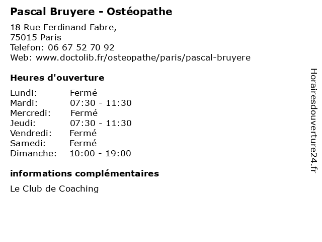 1 Pascal Bruyere - Ostéopathe (Distance: 18,90 km) 45 Allée Gay, 93220 Gagny bruyere, osteo, osteopathe, ostéopathe, pascal, sante, soins 2 Gimonet Pascal Bernard (Distance: 0,71 km) 18 Rue Auguste Chabrieres, 75015 Paris bernard, gimonet, pascal, restaurants 3 Dr. Pascal Touchard - Dentiste (Distance: 1,23 km) 133 Avenue Felix Faure, 75015 Paris dentiste, docteur, dr., medecins, pascal, sante, touchard 4 Boreau Pascal (Distance: 1,51 km) 31 Rue Jean Jaures, 92170 Vanves boreau, boucheries, pascal, poissonneries 5 Dr Pascal Bousiquier - Allergologue (Distance: 2,32 km) 25 Avenue de la Bourdonnais, 75007 Paris allergie, allergologie, allergologue, bousiquier, dr, pascal, pneumologie, pneumologue 6 Dr Pascal Hauet - Radiologue (Distance: 2,65 km) 166 Rue de l'Université, 75007 Paris dr, hauet, médecins, médicaments, pascal, radiologue, santé, secrétariat, spécialiste |