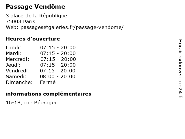 | Vendredi | 07:15-20:00 |