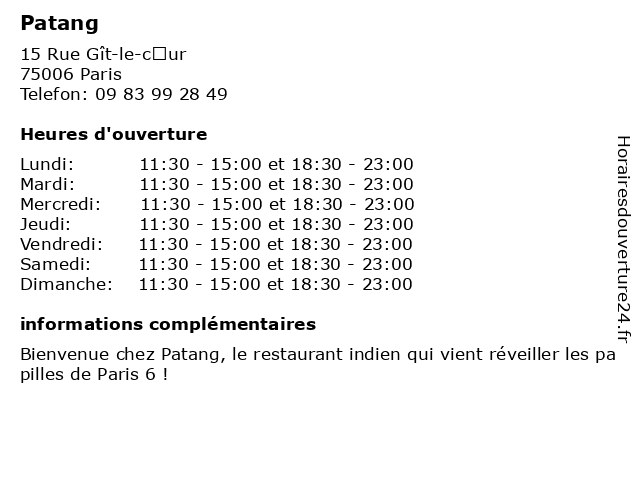 Samedi | 11:30-15:00 et 18:30-23:00 |