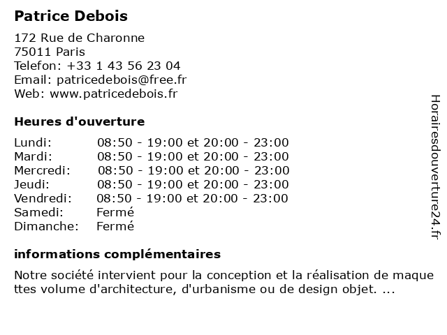 | Lundi | 08:50-19:00 et 20:00-23:00 |