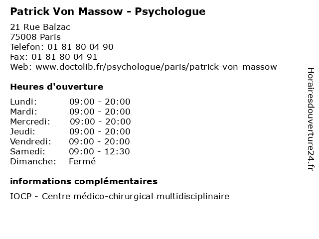 Termes de recherche pour Patrick Von Massow - Psychologue:patrick, von, secretariat, médecins, psychologue, thérapies, cabinets, massow |