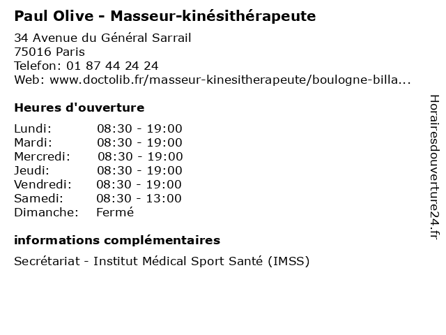 1 Bibliothèque Paul-Marmottan (Distance: 0,64 km) 7 place Denfert-Rochereau, 92100 Boulogne Billancourt bibliothèque, cd audio, cd.rom, livres, marmottan, paul, revues 2 Paul Olive - Masseur-kinésithérapeute - secrétariat (Distance: 1,44 km) 202 Boulevard Jean Jaurès, 92100 Boulogne-Billancourt docteur, kinésithérapeute, masseur, médecin, médecine, olive, paul, secrétariat 3 PAUL ET MARGUERITE (Distance: 1,67 km) 4 b Avenue Adrien Hebrard, 75016 Paris 16ème et, marguerite, paul 4 Square Paul Gilot (Du 29 octobre au 28 février) (Distance: 1,84 km) 38 bis rue de la Convention, 75015 Paris 28, 29, au, du, février, gilot, jardin, octobre, parc, paul, square 5 Square Paul Gilot (Du 01 au 24 mars) (Distance: 1,84 km) 38 bis rue de la Convention, 75015 Paris 01, 24, au, du, gilot, jardin, mars, parc, paul, square 6 Square Paul Gilot (Du 25 mars au 29 avril et septembre) (Distance: 1,84 km) 38 bis rue de la Convention, 75015 Paris 25, 29, au, avril, du, et, gilot, jardin, mars, parc, paul, septembre, square |