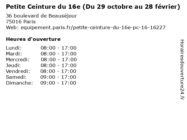 Termes de recherche pour Petite Ceinture du 16e (Du 29 octobre au 28 février):du, au, jardin, petite, parc, square, 28, octobre, 29, février, 16e, ceinture |