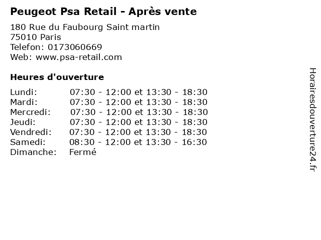 | Lundi | 07:30-12:00 et 13:30-18:30 |