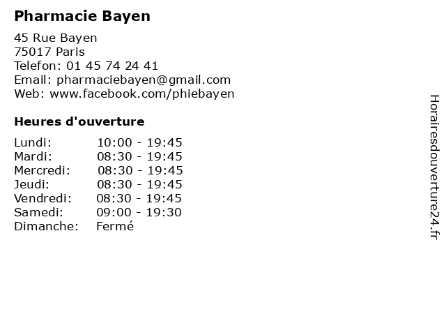 1 Auto Moto Ecole Bayen (Distance: 0,02 km) 40 Rue Bayen, 75017 Paris auto, bayen, ecole, formations, groupe, moto, école 2 Crèche Bayen 17ème (Distance: 0,13 km) 37 / 39 Rue Bayen, 75017 Paris 17ème, bayen, crèche, crèches, services, services à la personne 3 Centre Waterbike Bayen (Distance: 0,20 km) 31 rue Bayen, 75017 Paris aquabike, aquabiking, bayen, centre, massages, sauna, spa, waterbike 4 École maternelle publique Bayen (Distance: 0,24 km) 56 rue Bayen, 75017 Paris bayen, cours, maternelle, publique, servicios, école 5 Apertivus Bayen (Distance: 0,39 km) 9 rue Bayen, 75017 Paris apertivus, apéro, bayen, caves, fines, produits, épicerie 6 Nicolas Bayen Poncelet (Distance: 0,43 km) 3 Rue Bayen, 75017 Paris bayen, champagnes, cidre, nicolas, poncelet, rhums, rosé, ruinart, spiritueux, vins, vins blancs, vins rouges, whiskies |