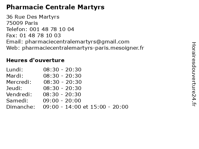 | Dimanche | 09:00-14:00 et 15:00-20:00 |