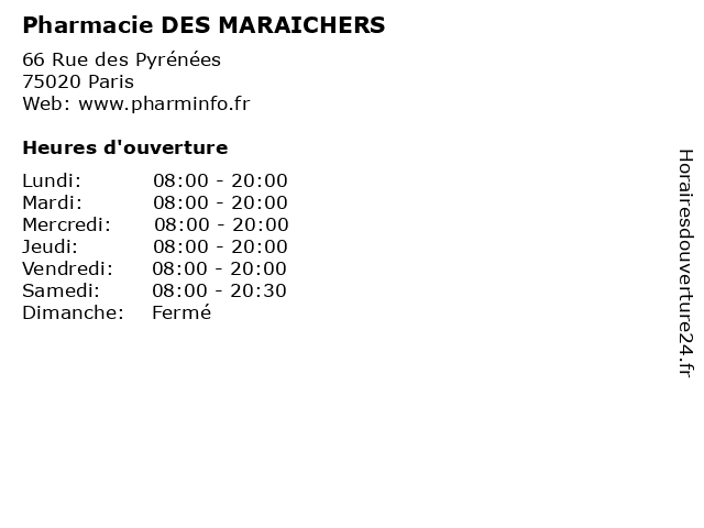 | Samedi | 08:00-20:30 |