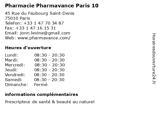 1 Pharmacie Pharmavance Paris X (Distance: 0,00 km) 45 Rue du Faubourg Saint Denis, 75010 Paris médicaments, paris, pharmacie, pharmavance, santé, service 2 Sofradom - Domiciliation d'entreprise - Agence Paris 10 - Strasbourg Saint-Denis (Distance: 0,03 km) 1/3 Rue d'Enghien, 75010 Paris 10, agence, d'entreprise, denis, domiciliation, paris, saint, sofradom, strasbourg 3 WHITE Coffee - Paris 10 (Distance: 0,06 km) 50 Rue Du Faubourg Saint-denis, 75010 Paris 10, boulangeries, coffee, paris, white 4 OPTIC DUROC - OPTICIEN - PARIS 10 (Distance: 0,18 km) 28 Boulevard Saint Denis, 75010 Paris 10, duroc, optic, opticien, paris 5 Conservatoire Municipal Hector Berlioz / du 1er au 10 septembre 2016 (Distance: 0,36 km) 6 Rue Pierre Bullet, 75010 Paris 10, 1er, 2016, au, berlioz, conservatoire, conservatoires, du, equipement, hector, l'heure, livre, municipal, médiathèque, septembre, services 6 Luckey Paris 10 (Distance: 0,47 km) 1b Bis Cité Paradis, 75010 Paris 10, conciergerie, gestion, location, luckey, paris, paris 10, service |