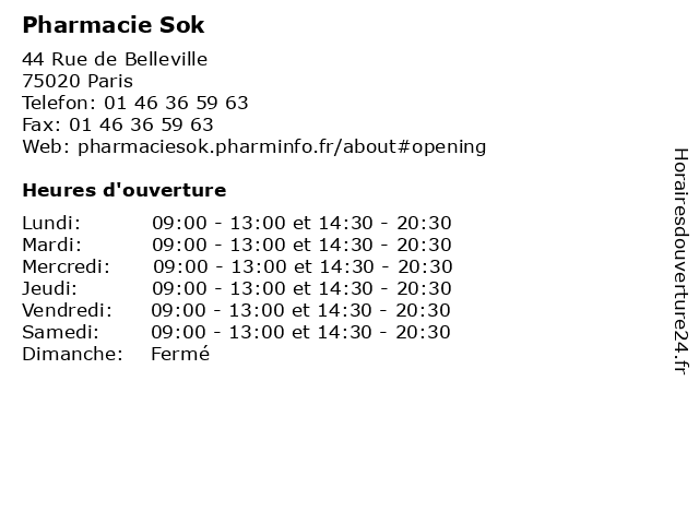 | Lundi | 09:00-13:00 et 14:30-20:30 |