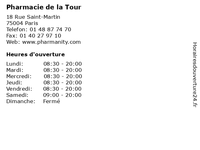 | Vendredi | 08:30-20:00 |
