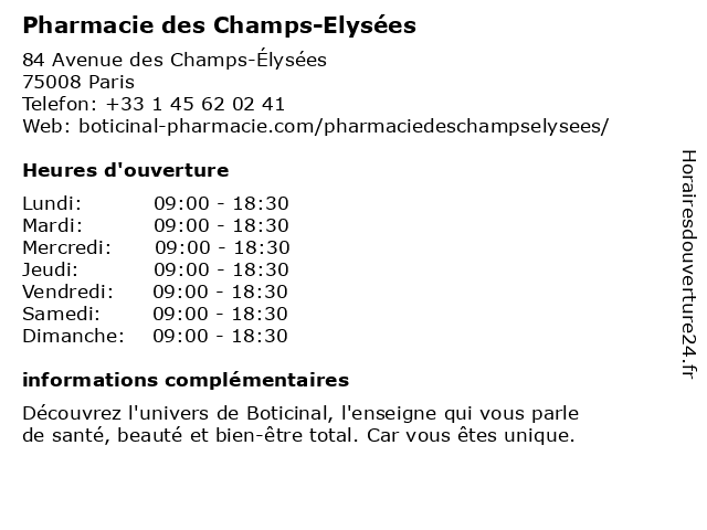 Termes de recherche pour Pharmacie des Champs-Elysées:champs, des, pharmacie, elysees, pharmacie boticinal, pharmacie paris, pharmacie 75008, pharmacie champs elysées |
