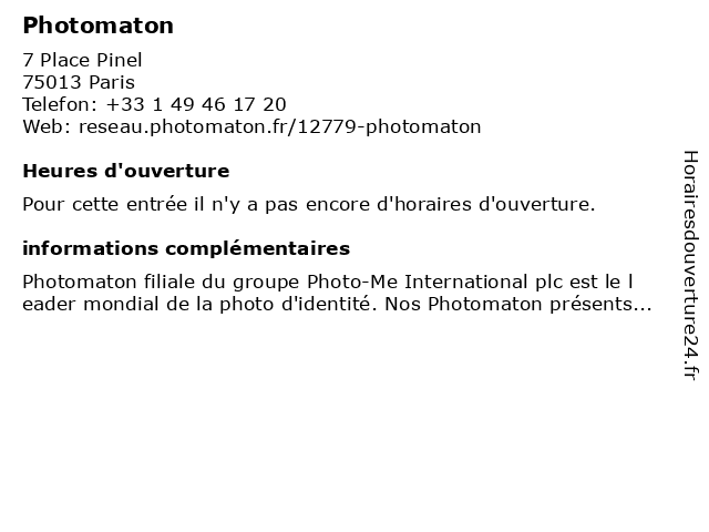 4 Photomaton (Distance: 0,58 km)54 Boulevard de l'Hôpital, 75013 Paris photomaton