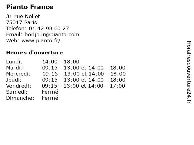 | Mardi | 09:15-13:00 et 14:00-18:00 |