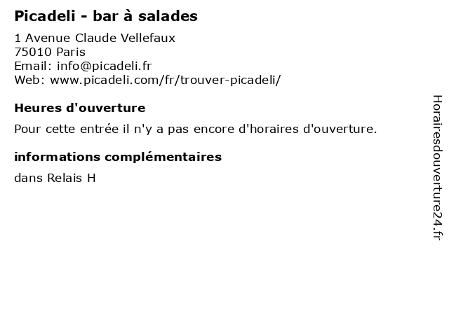 1 Picadeli - bar à salades (Distance: 0,14 km) 7 avenue Claude Vellefaux, 75010 Paris bar, boisson, fastfood, picadeli, restauration, salades 2 Picadeli - bar à salades (Distance: 0,45 km) 108-110 quai de Jemmapes, 75010 Paris bar, boisson, fastfood, picadeli, restauration, salades 3 Picadeli - bar à salades (Distance: 0,93 km) 16-18 Rue Bouchardon, 75010 Paris bar, boisson, fastfood, picadeli, restauration, salades 4 Picadeli - bar à salades (Distance: 1,20 km) 7-9 rue des Petites Ecuries, 75010 Paris bar, boisson, fastfood, picadeli, restauration, salades 5 Picadeli - bar à salades (Distance: 1,26 km) 343 rue Saint Martin, 75003 Paris bar, boisson, fastfood, picadeli, restauration, salades 6 Picadeli - bar à salades (Distance: 1,27 km) 49 rue de Bretagne, 75003 Paris bar, boisson, fastfood, picadeli, restauration, salades |