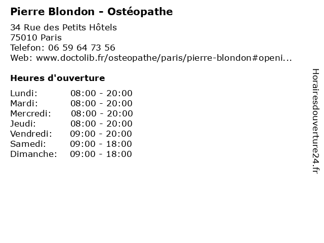1 Maître Sébastien Blondon - Avocat (Distance: 2,34 km) 64 Rue des Mathurins, 75008 Paris avocat, avocats, blondon, cabinet, conseils, contentieux, juridique, justice, litiges, maître, services, sébastien 2 Dr Hugues Blondon - Gastro-entérologue et hépatologue (Distance: 17,34 km) 177 rue de Versailles, 78150 Le Chesnay blondon, consultation, docteur, dr, entérologue, et, gastro, hugues, hépatologue, med, médecin, traitement 3 Charlotte Zyck - Ostéopathe (Distance: 0,00 km) 34 Rue des Petits Hôtels, 75010 Paris charlotte, osteo, osteopathe, ostéopathe, sante, soins, zyck 4 Ilona Gangloff - Ostéopathe (Distance: 0,00 km) 34 Rue des Petits Hôtels, 75010 Paris gangloff, ilona, osteo, osteopathe, ostéopathe, sante, soins 5 Terrance Tran - Ostéopathe (Distance: 0,00 km) 34 Rue des Petits Hôtels, 75010 Paris médecin, médecine, médical, ostéopathe, pharmaceutique, secretariat, terrance, traitement, tran 6 Dr Meng Claire - Ostéopathe (Distance: 0,00 km) 34 Rue des petits hotels, 75010 Paris claire, docteur, dr, meng, ostéopathe, paris |
