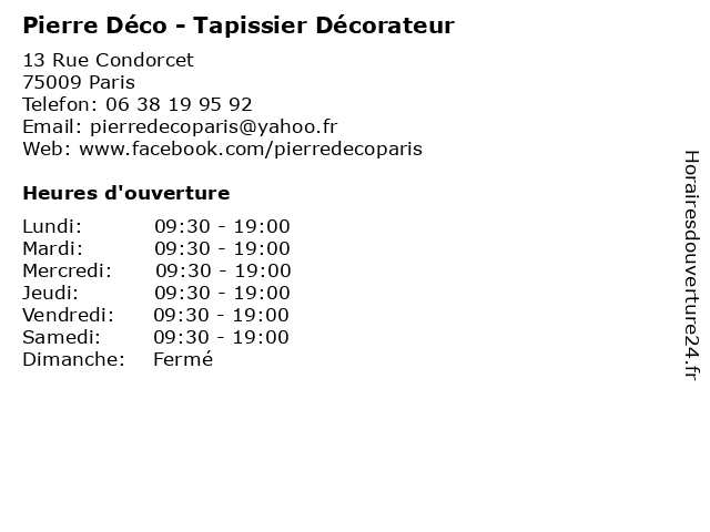 1 Jardin du Louvre - Fleuriste Décorateur (Distance: 1,62 km) 25 Rue du Louvre, 75001 Paris du, décorateur, décoration, fleuriste, fleuriste/décorateur, fleurs, jardin, louvre, magasins, paris 2 Confo déco (Distance: 3,40 km) 23 Rue Madeleine Vionnet, 93300 Aubervilliers alimentation, beauté & sante, confo, culture & loisirs, déco, enfants, high-tech, maison & déco, mode, restaurants 3 Thyrse Paris - Tapissier décorateur (Distance: 4,28 km) 84 Rue Claude Bernard, 75005 Paris desing, décorateur, paris, tapissier, thyrse, tissus 5 Marcueyz Déco (Distance: 5,74 km) 108-116 Avenue Charles de Gaulle, 92200 Neuilly-sur-Seine beaute, cafe, chaussures, déco, enfants, lingerie, marcueyz, mode femmes, mode hommes, restaurant, sport 6 Annie & Simon Tapissier Décorateur (Distance: 5,83 km) 34 Rue Bois le Vent, 75016 Paris annie, décorateur, simon, tapissier |