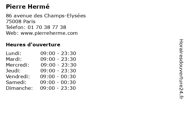| Lundi | 09:00-23:30 |