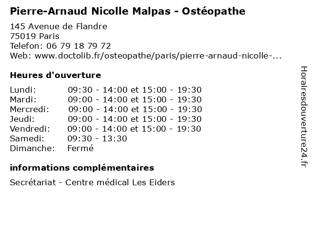 | Mercredi | 09:00-14:00 et 15:00-19:30 |