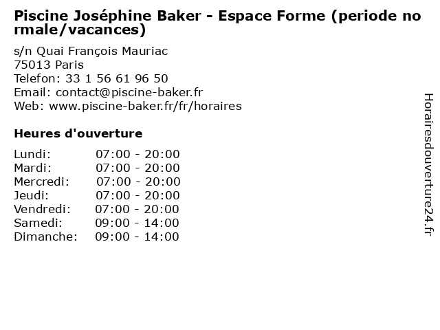 Termes de recherche pour Piscine Joséphine Baker - Espace Forme (periode normale/vacances):espace, forme, piscine, période, baker, joséphine, formation, normale, forme/periode, normale/vacances |