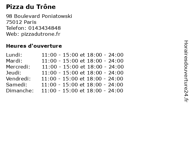 | Mardi | 11:00-15:00 et 18:00-24:00 |