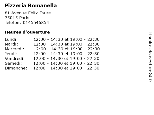 | Dimanche | 12:00-14:30 et 19:00-22:30 |