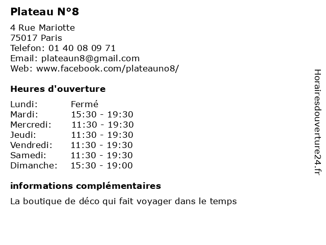 1 Le Petit Plateau (Distance: 4,13 km) 1 Quai Aux Fleurs, 75004 Paris cuisine, le, petit, plateau, restaurants 2 Ophtalmologique Adolphe de Rothschild - Plateau d'Imagerie Medicale (Distance: 4,22 km) 29 Rue Manin, 75019 Paris adolphe, bureau, consultation, d'imagerie, de, dr, la maladie, la médecine, la pratique, med, medicale, médecin, ophtalmologique, plateau, rothschild, thérapie, traitement 3 Forest Hill (Plateau cardio) (Distance: 4,78 km) 111 avenue Victor Hugo, 93300 Aubervilliers cardio, club, forest, hill, loisirs, moving, plateau, salle de sport, sports 4 Plateau Urbain (Distance: 5,46 km) 13 rue Santeuil, 75005 Paris association, locaux, plateau, projets, temporaires, urbain 5 Yespark, location de parking au mois - Malakoff - Plateau de Vanves - rue Auguste Comte - Vanves (Distance: 6,76 km) 17 Rue Auguste Comte, 92170 Vanves au, auguste, comte, de, location, malakoff, mois, parking, plateau, rue, vanves, yespark 6 Pharmacie du Plateau - Univers Pharmacie (Distance: 6,81 km) 32 Rue Auguste Comte, 92170 Vanves du, medicaments, parapharmacie, pharmacie, plateau, univers |