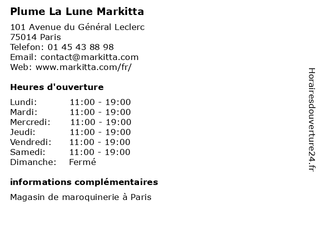 | Lundi | 11:00-19:00 |