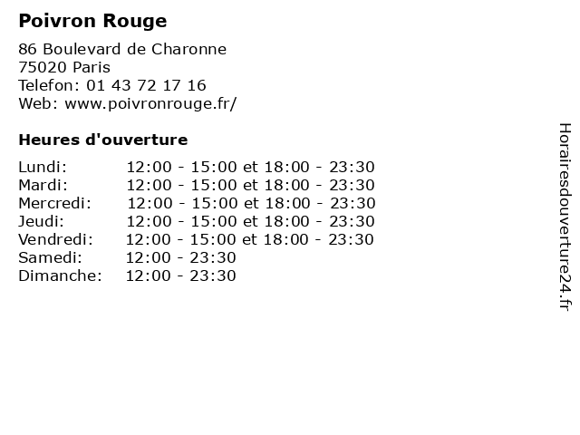 | Mardi | 12:00-15:00 et 18:00-23:30 |