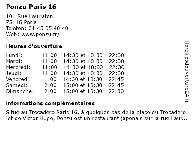 Termes de recherche pour Ponzu Paris 16:paris, restaurants, 16, restaurant asiatique, steak house, service de livraison de repas à domicile, restaurant panasiatique, ponzu, restaurant de sushis, restaurant de fusion asiatique |