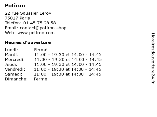 Horaires d'ouverture |