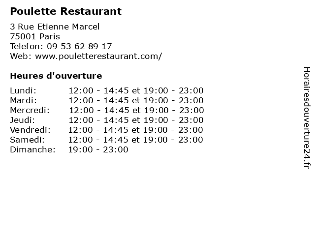 | Mardi | 12:00-14:45 et 19:00-23:00 |