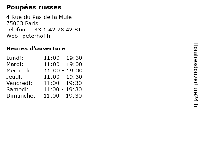 1 Bains Russes (Distance: 2,83 km) 8 Rue de la Sourdière, 75001 Paris bains, business, relaxation, russes, sauna, spa 3 Galerie de Medicis (Distance: 0,08 km) 18 Place des Vosges, 75004 Paris art, artists, de, galerie, gallery, medicis 5 Magda Danysz Gallery (Distance: 0,53 km) 78 Rue Amelot, 75011 Paris art, artists, danysz, gallery, magda 6 Galerie Perrotin (Distance: 0,56 km) 76 Rue de Turenne, 75003 Paris art, artists, galerie, gallery, perrotin |
