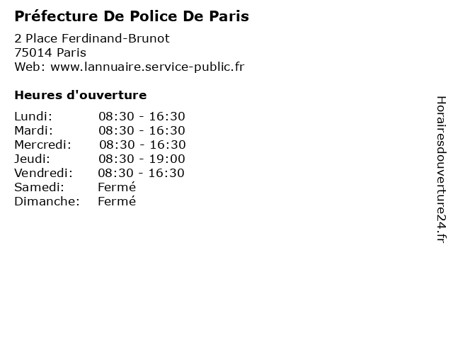 1 Préfecture De Police De Paris (Distance: 1,96 km) 21 Place Du Panthéon, 75005 Paris administration, assoc, de, paris, police, préfecture, services, services publics 2 Préfecture De Police De Paris (Distance: 2,09 km) 1 Place d'Italie, 75013 Paris administration, assoc, de, paris, police, préfecture, services, services publics 3 Préfecture De Police De Paris (Distance: 2,15 km) 31 Rue Péclet, 75015 Paris administration, assoc, de, paris, police, préfecture, services, services publics 4 Préfecture De Police De Paris (Distance: 2,75 km) 116 Rue De Grenelle, 75007 Paris administration, assoc, de, paris, police, préfecture, services, services publics 5 Préfecture De Police De Paris (Distance: 2,88 km) . Place Louis Lépine, 75004 Paris administration, assoc, de, paris, police, préfecture, services, services publics 6 Préfecture De Police De Paris (Distance: 4,50 km) 6 Rue Drouot, 75009 Paris administration, assoc, de, paris, police, préfecture, services, services publics |
