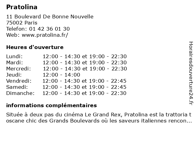 | Dimanche | 12:00-14:30 et 19:00-22:30 |