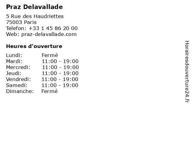 | Vendredi | 11:00-19:00 |