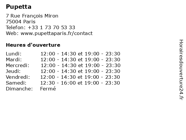 | Mardi | 12:00-14:30 et 19:00-23:30 |