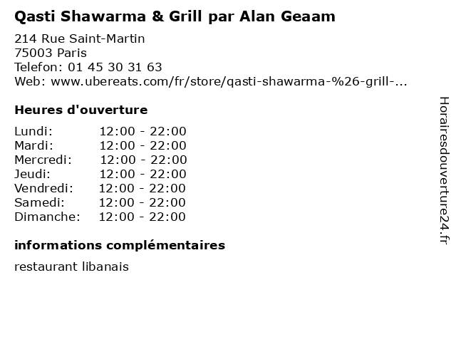 | Dimanche | 12:00-22:00 |