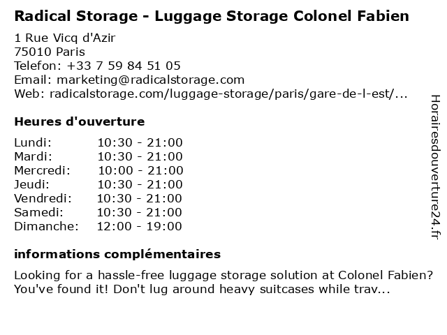 Termes de recherche pour Radical Storage - Luggage Storage Colonel Fabien:fabien, radical, colonel, luggage, storage, luggage storage, luggage storage near me |