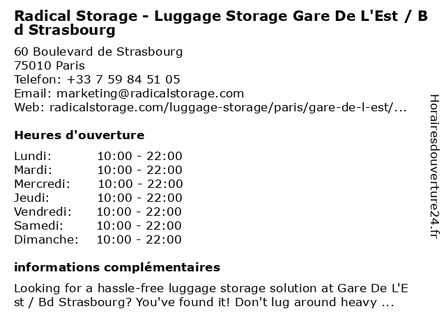 Termes de recherche pour Radical Storage - Luggage Storage Gare De L'Est / Bd Strasbourg:de, strasbourg, gare, bd, l'est, radical, luggage, storage, luggage storage, luggage storage near me |
