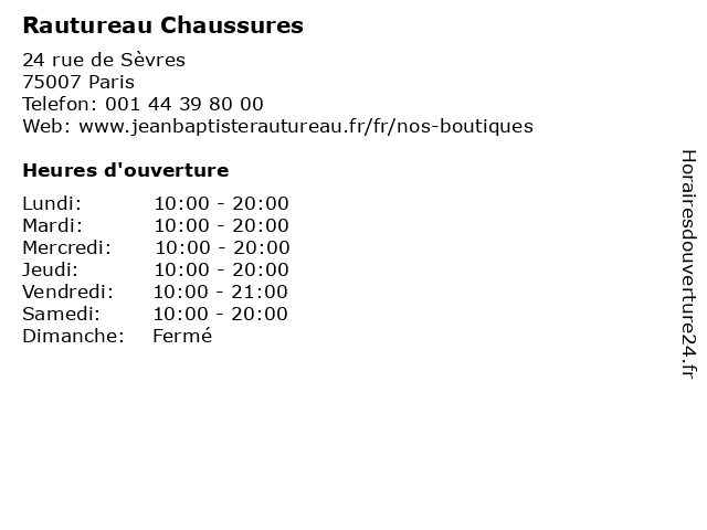 1 Rautureau Chaussures (Distance: 0,42 km) 24 rue de Grenelle, 75007 Paris accessoires, chaussures, femme, homme, magasin, rautureau 2 Rautureau Chaussures (Distance: 2,42 km) 16 rue du Bourg Tibourg, 75004 Paris chaussures, femmes, hommes, magasin, rautureau 3 Rautureau Chaussures (Distance: 2,56 km) 40 boulevard Haussmann, 75009 Paris accessoires, chaussures, femme, homme, magasin, rautureau 4 GEMO PARIS - RUE DE RENNES Chaussures et Vêtements (Distance: 0,37 km) 104 Rue de Rennes, 75006 Paris bijoux et accesoires, chaussures, de, et, gemo, lingerie, magasin bébé, maroquinerie, mode et habillement, paris, rennes, rue, vêtements, vêtements bébé, vêtements enfant, vêtements femme, vêtements homme 5 Rieker Chaussures (Distance: 0,46 km) 123 Rue de Rennes, 75006 Paris boutique, chaussures, collections, mode, prêt à porter, rieker 6 Arche Chaussures (Distance: 0,93 km) 93 rue de Seine, 75006 Paris accessoires, arche, ballerines, chaussures, sandales, tennis  |
