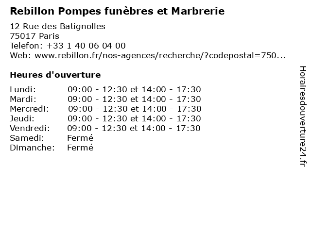 1 Rebillon Pompes funèbres et Marbrerie (Distance: 3,07 km) 8 Avenue du Cimetière, 93400 Saint-Ouen et, funèbres, marbrerie, pompes, rebillon 2 Rebillon Pompes funèbres et Marbrerie (Distance: 4,33 km) 13 Rue des Graviers, 92200 Neuilly-sur-Seine et, funèbres, marbrerie, pompes, rebillon 3 Rebillon Pompes funèbres et Marbrerie (Distance: 4,76 km) 50 Boulevard Edgar Quinet, 75014 Paris et, funèbres, marbrerie, pompes, rebillon 4 Rebillon Pompes funèbres et Marbrerie (Distance: 5,48 km) 27-29 Boulevard de Ménilmontant, 75011 Paris et, funèbres, marbrerie, pompes, rebillon 5 Rebillon Pompes funèbres et Marbrerie (Distance: 7,54 km) 48 Avenue Jean Baptiste Clement, 92100 Boulogne-Billancourt et, funèbres, marbrerie, pompes, rebillon 6 Rebillon Pompes funèbres et Marbrerie (Distance: 7,58 km) 204 Rue Sadi Carnot, 93170 Bagnolet et, funèbres, marbrerie, pompes, rebillon |