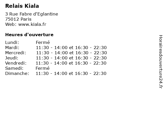 | Mardi | 11:30-14:00 et 16:30-22:30 |