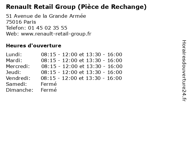 1 Renault Retail Group (Pièce de Rechange) (Distance: 2,01 km) 23 Boulevard de Courcelles, 75008 Paris automobiles, de, garage, group, motos-concessionnaire, pièce, rechange, renault, retail 2 Renault Retail Group (Distance: 0,00 km) 51 Avenue de la Grande Armée, 75016 Paris automobiles, garage, group, motos-concessionnaire, renault, retail 3 Renault Retail Group (Véhicule Neuf) (Distance: 0,00 km) 51 Avenue de la Grande Armée, 75016 Paris automobiles, garage, group, motos-concessionnaire, neuf, renault, retail, véhicule 4 Renault Retail Group (Atelier Mécanique) (Distance: 0,00 km) 51 Avenue de la Grande Armée, 75016 Paris atelier, automobiles, garage, group, motos-concessionnaire, mécanique, renault, retail 5 Renault Retail Group (Véhicule d'Occasion) (Distance: 0,00 km) 51 Avenue de la Grande Armée, 75016 Paris automobiles, d'occasion, garage, group, motos-concessionnaire, renault, retail, véhicule 6 Renault Retail Group (Z.E Véhicule Electrique) (Distance: 0,00 km) 51 Avenue de la Grande Armée, 75016 Paris automobiles, electrique, garage, group, motos-concessionnaire, renault, retail, véhicule, z.e |